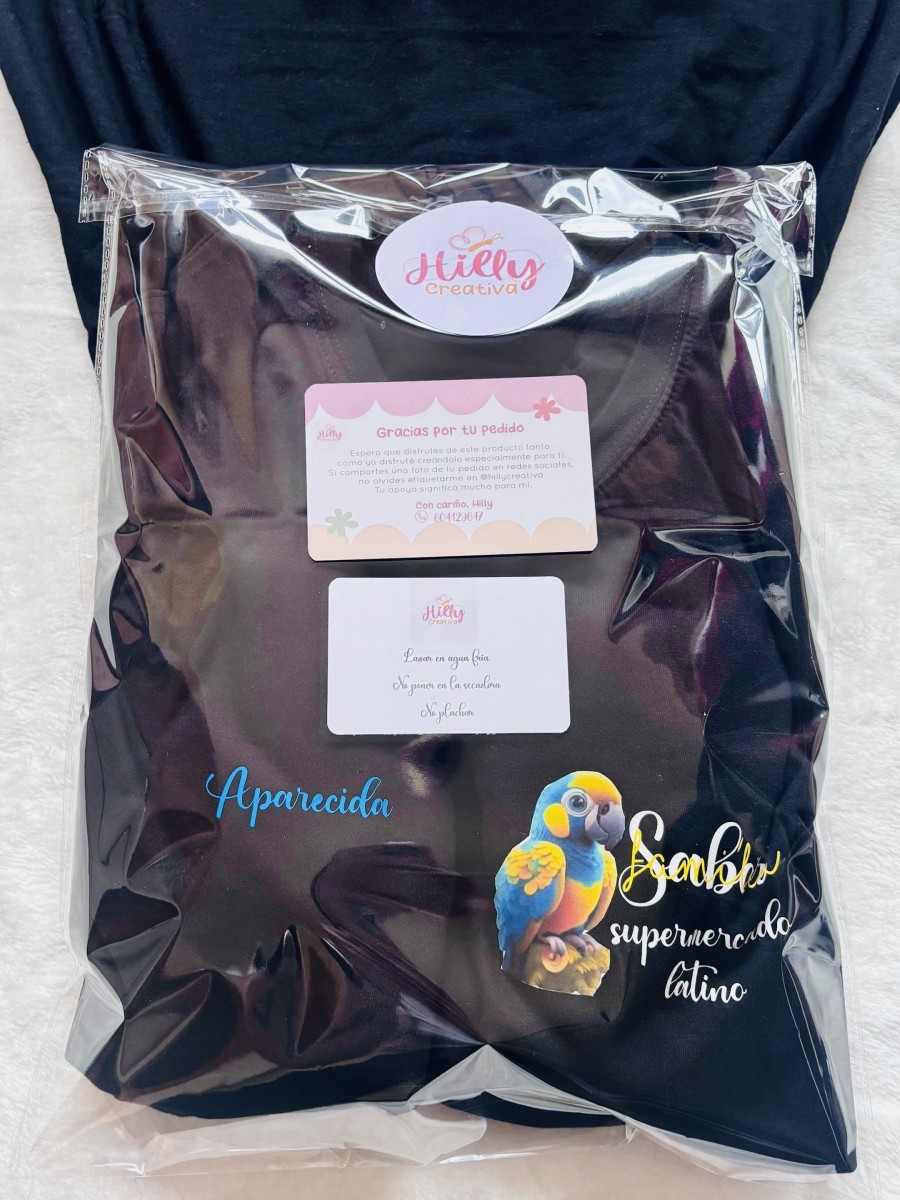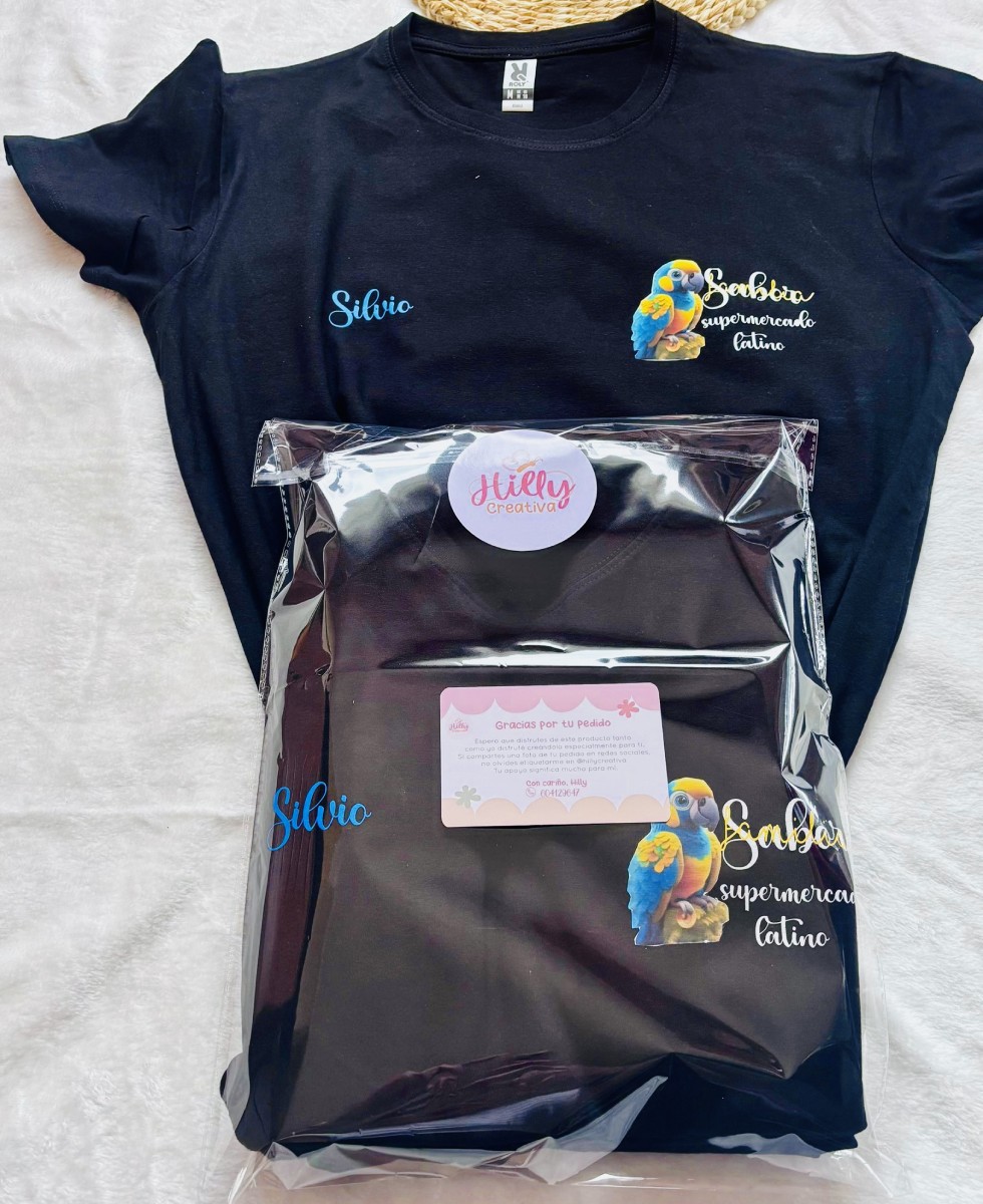 Profesionalismo y comodidad en una sola prenda. Camiseta negra personalizada con el logo del supermercado y el nombre del empleado, ideal para unificar tu equipo y proyectar una imagen sólida. Disponible en todas las tallas y diseñada para el trabajo diario. Esta personalizada con vinil textil y vinil imprimible.